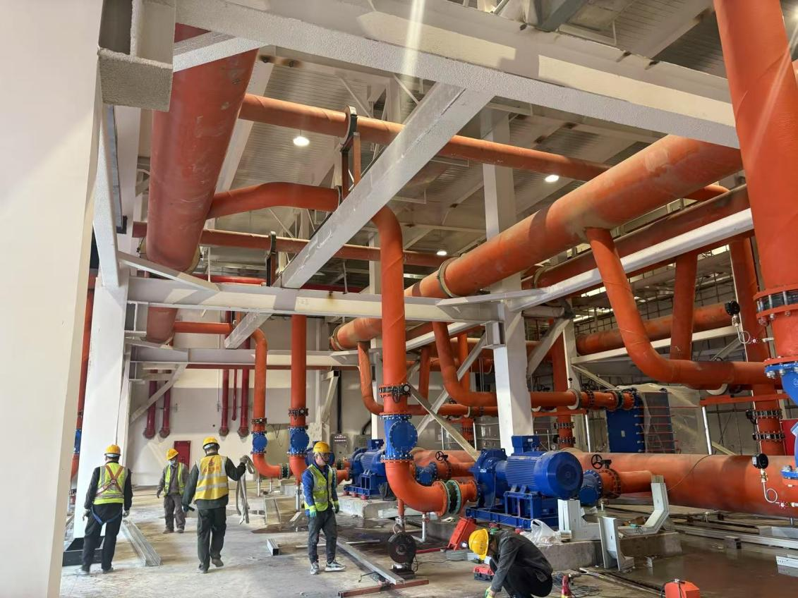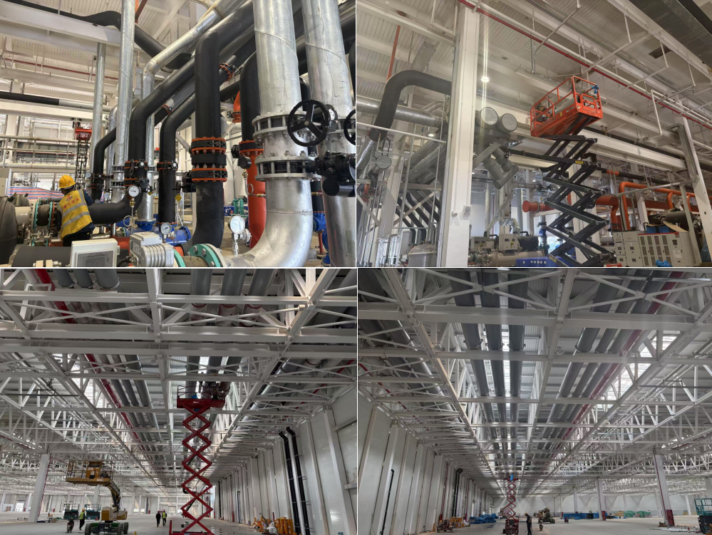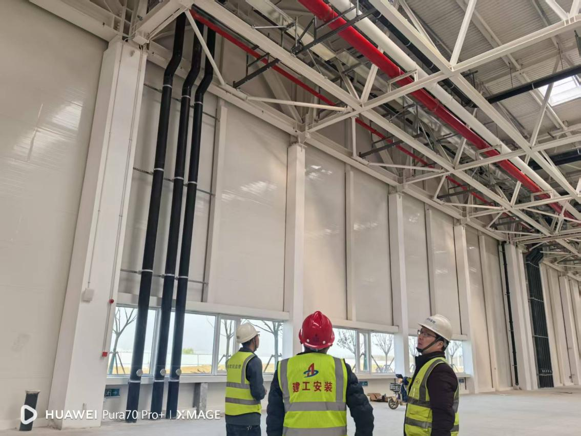自一季度以來,項目部以“2025開局即決戰”的昂揚斗志,迅速掀起“大干快上”施工熱潮。對各車間、各系統剩余工程量展開全面梳理統計,同時針對剩余工程量堅持每日召開專題會,以倒排計劃為“發令槍”,對照時間節點要求各班組加班加點、不折不扣完成。截至發稿,車間一大面積施工基本完成,形象進度完成約96%;車間二形象進度完成約90%;車間四形象進度完成約92%;站房一各設備管道基本安裝完成,正在調試中,形象進度完成約90%。目前,各車間工藝生產均已進場,燃氣鍋爐點火成功、空壓站完成試運行、工藝24h冷凍水、恒溫恒濕空調均已投入使用;各車間工藝區送電已到位、供水完成。