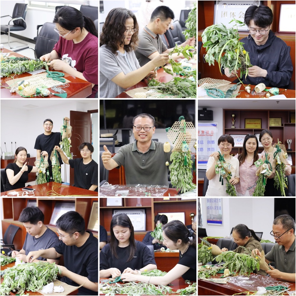 活動現(xiàn)場,大家首先學(xué)習(xí)了端午節(jié)的由來、習(xí)俗,以及艾草在端午文化中的特殊寓意,在手工包裝艾葉花束環(huán)節(jié),大家熱情投入,小心翼翼地整理清香撲鼻的艾葉,用五彩絲線仔細纏繞,將一片片艾葉變成了精致的艾葉花束。有人別出心裁地將艾葉花束編織成愛心、花朵的形狀,有人則在絲線上系上小巧的鈴鐺,隨著動作發(fā)出清脆聲響。現(xiàn)場歡聲笑語不斷,大家互相展示作品,分享制作心得,平日里緊張忙碌的工作在此刻被輕松愉悅氛圍取代。