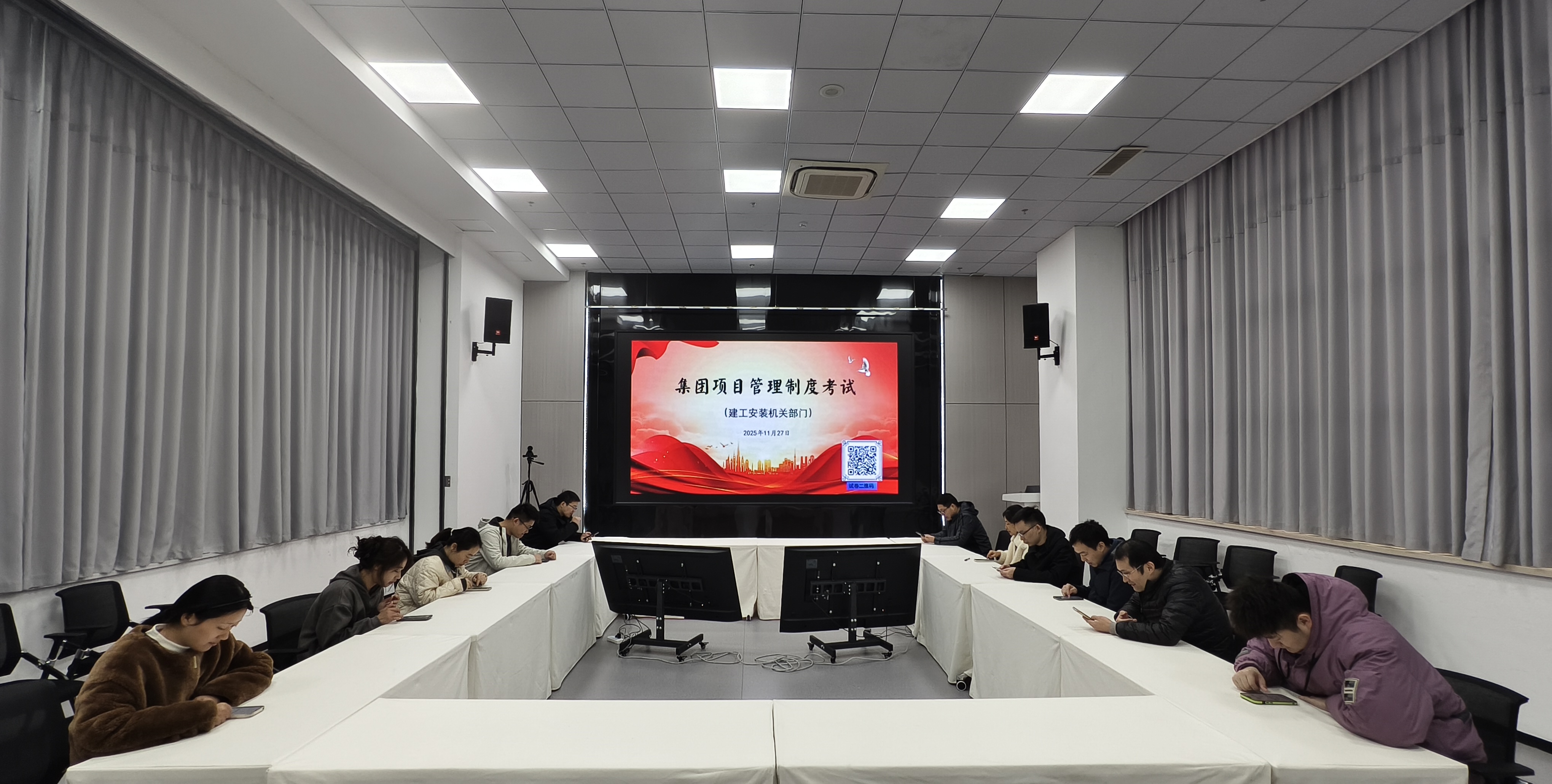 本次考試主要通過線上APP進行,建工安裝機關各部門、所屬各單位及各項目部全體員工,共計近 300 人參加。試題嚴格依據集團《項目管理類文件選編》手冊編制,聚焦制度核心條款、關鍵業務流程、重點風險防控等核心要點,全面考察員工對集團項目管理體系的掌握程度、理解深度及實際應用能力,切實以考促學、以考促記、以考促用。